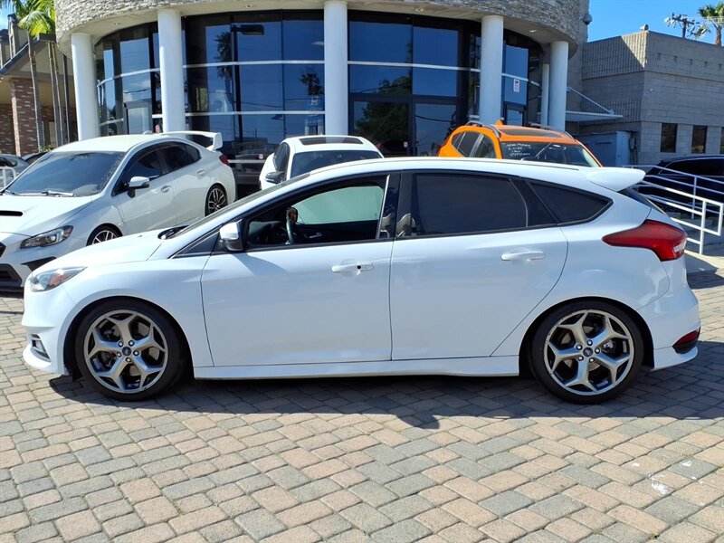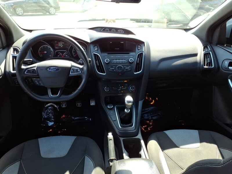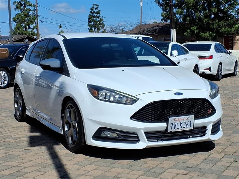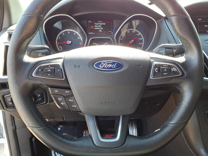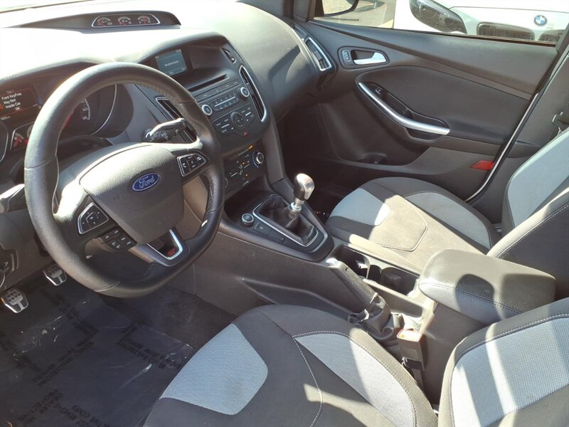 Bright Oxford White on the outside with a Charcoal Black, sport-bolstered interior — this 2016 Ford Focus ST is a zippy hot-hatch powered by the 2.0L EcoBoost Turbo I4 (252 hp, 270 lb-ft) mated to a sporty 6-speed manual for an engaging drive. Factory-equipped for performance and everyday comfort with a sport-tuned suspension, limited-slip differential, upgraded performance brakes, dual exhaust and 18" alloy wheels, plus ST body styling and badging. The cabin offers supportive bolstered seats, power windows and locks, cruise control, air conditioning, steering-wheel audio controls and Bluetooth/USB/Aux connectivity, with standard safety systems like ABS, traction and stability control and multiple airbags. Excellent ownership history with under 66,000 miles (averaging <6,000/yr) and great efficiency at about 22 MPG city / 31 MPG highway — fun, practical, and ready to drive!