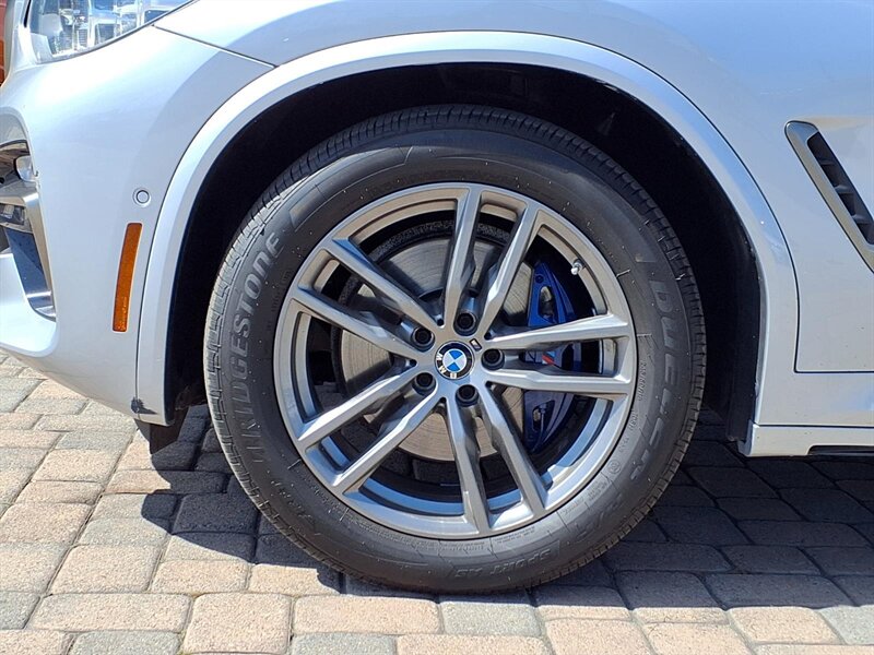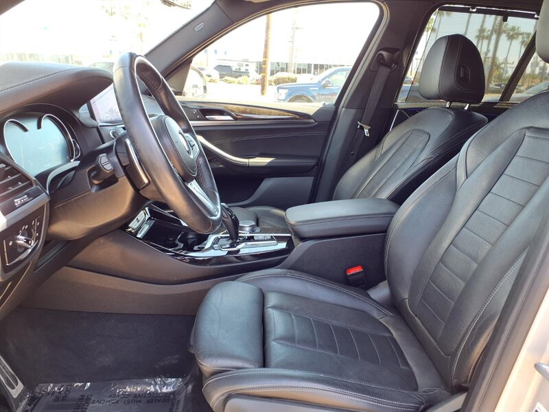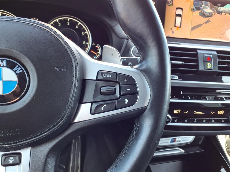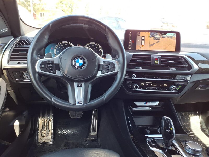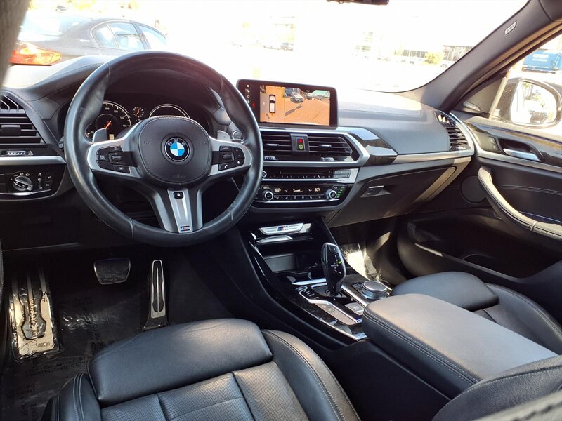 Sporty and refined, this 2019 BMW X3 M40i in Glacier Silver Metallic with a Black interior is powered by a thrilling 3.0L turbocharged inline-6 putting out 355 hp and 369 lb-ft. Factory equipment includes BMW xDrive all-wheel drive with an 8-speed Sport automatic transmission and M-tuned performance hardware (adaptive M suspension and M Sport brakes), plus LED headlights, panoramic sunroof, hands-free power tailgate, and keyless entry with push-button start. Comfort and convenience come standard with leather seating, heated power front seats with memory, dual-zone automatic climate control, BMW iDrive infotainment with central display and rotary controller, Bluetooth/USB connectivity, rearview camera and parking sensors, and a full complement of standard safety systems (ABS, traction/stability control and multiple airbags). This X3 has good mileage—under 68,000 miles (about <9,000 miles/year)—and returns roughly 20 MPG city / 27 MPG highway.