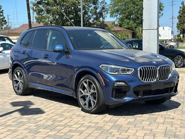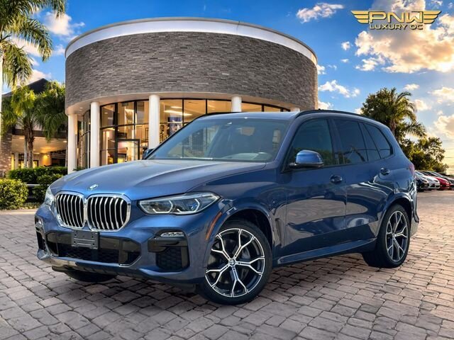Sporty, luxurious and stunning in Phytonic Blue Metallic with a Black interior — this 2019 BMW X5 xDrive50i is powered by a 4.4L Twin Turbo V8 producing 456 hp and 479 ft-lbs of torque, paired with BMW’s smooth 8-speed Steptronic Sport automatic and xDrive all-wheel drive for confident performance. Factory-equipped features include selectable driving modes (ECO PRO/COMFORT/SPORT), BMW iDrive infotainment with navigation, Bluetooth, USB and voice control, a panoramic moonroof, power liftgate, Comfort Access keyless entry, power front seats with memory and heated fronts, dual-zone automatic climate control, LED lighting, rearview camera with front/rear parking sensors, stability/traction controls, multiple airbags and tire pressure monitoring. Exceptionally low mileage — under 39,000 miles (averaging less than 5,000 miles/year) — and fuel economy around 17 MPG city / 22 MPG highway. Ready to turn heads and deliver smiles!