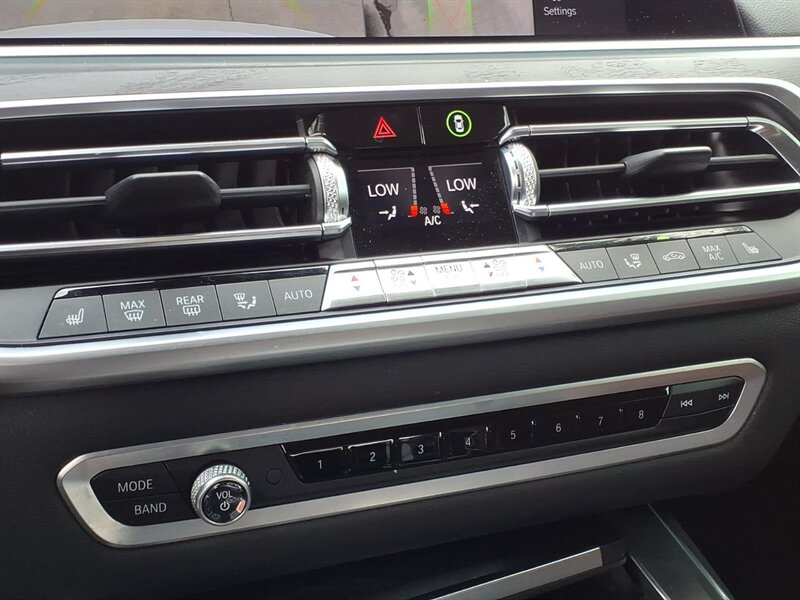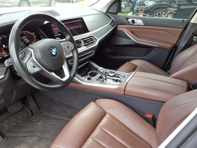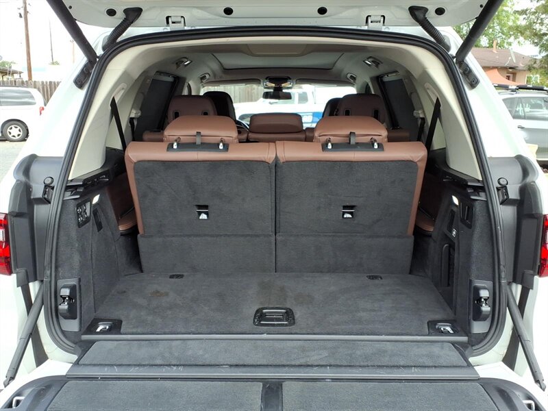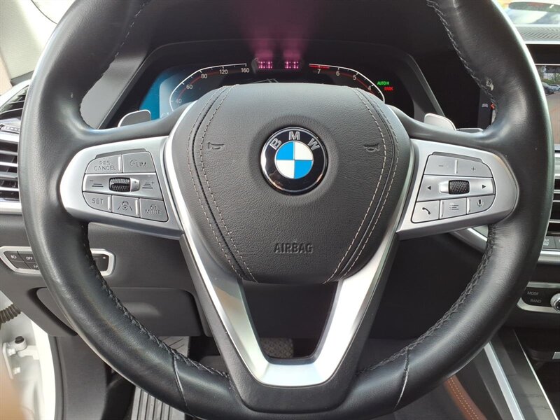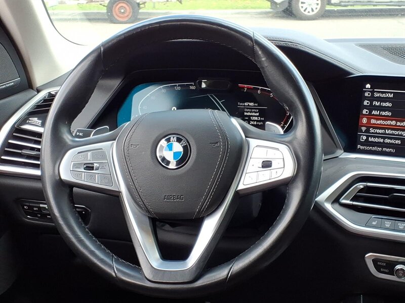 Alpine White 2019 BMW X7 xDrive40i — a luxurious 7-passenger SUV powered by a 3.0L turbocharged inline-6 (335 hp, 330 lb-ft) with BMW xDrive all-wheel drive and smooth 8-speed automatic shifting. Factory-equipped features include a panoramic glass roof, power liftgate, third-row seating, premium Black interior with power-adjustable front seats, LED headlights, a large iDrive infotainment display with navigation, Bluetooth/USB connectivity, multi-zone climate control, keyless entry/start, rearview camera and parking sensors for confident daily driving. This well-maintained example has under 66,000 miles (averaging <9,000 miles/year) and returns about 20 MPG city / 25 MPG highway — ready to deliver comfort and capability with a smile.