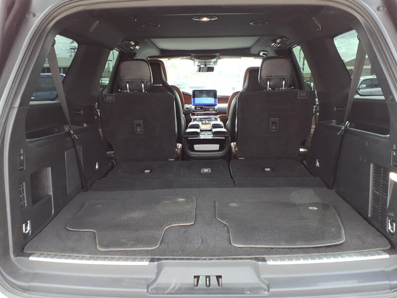 Factory equipment includes premium leather seating with heated and ventilated front seats and heated second-row captain’s chairs, power-adjustable front seats with memory, tri-zone automatic climate control, a panoramic Vista Roof, power liftgate and power-folding third-row seating for flexible cargo and passenger space. Infotainment and convenience arrive via Lincoln’s SYNC 3 touchscreen with navigation, Apple CarPlay/Android Auto, Bluetooth and multiple USB ports, while the Reserve trim adds upscale touches like real wood and metal trim, ambient lighting and thoughtful storage solutions. Safety and driver aids come from a suite of factory features including blind-spot monitoring with cross-traffic alert, a rearview camera with parking sensors, forward collision mitigation and lane-assistance technologies to keep every drive confident and comfortable.