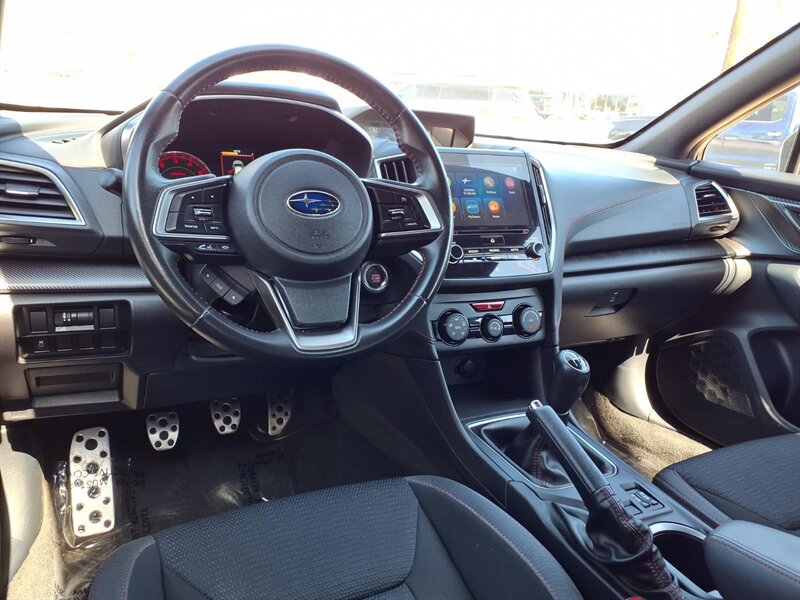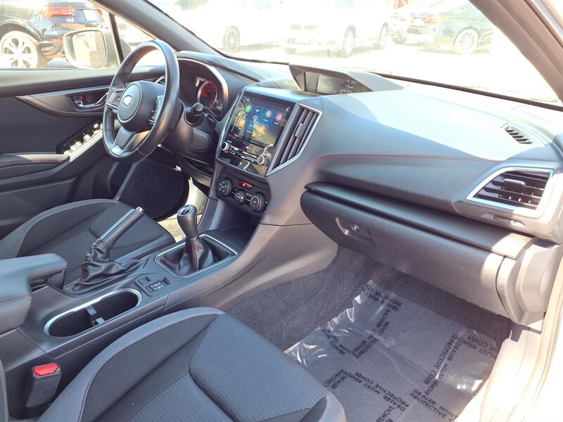 Bright and fun 2019 Subaru Impreza Sport in Ice Silver Metallic with a Black interior — powered by a lively 2.0L H4 making 152 hp and 145 ft-lbs (22 city / 30 highway). Factory equipment includes Subaru’s Symmetrical All-Wheel Drive, sport-tuned styling with 17-inch dark alloy wheels and rear roof spoiler, a 7-inch STARLINK touchscreen with Apple CarPlay/Android Auto and Bluetooth hands-free, a rearview camera, sport cloth seats with contrast stitching, fog lights, power windows/locks and remote keyless entry, plus a full complement of safety gear (ABS, traction and stability control, multiple airbags and tire pressure monitoring) for confident, comfortable driving.
