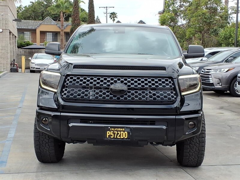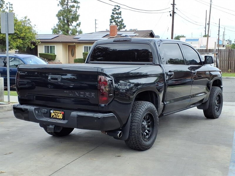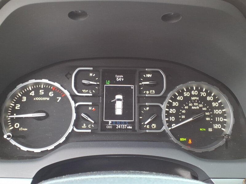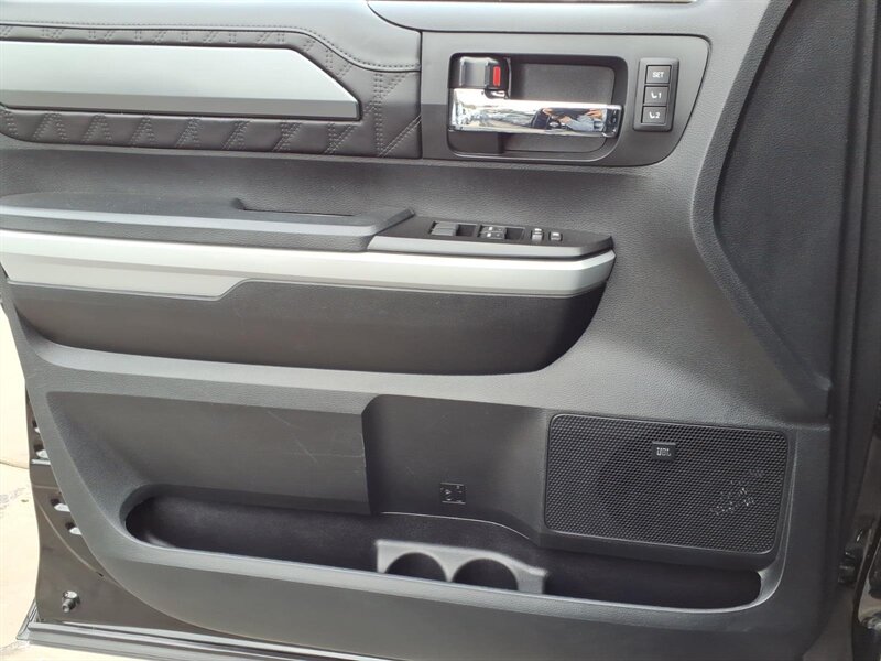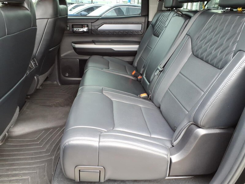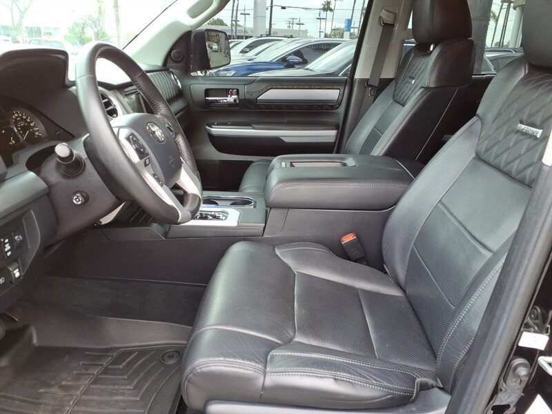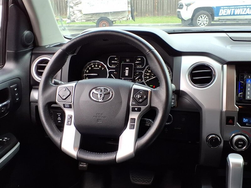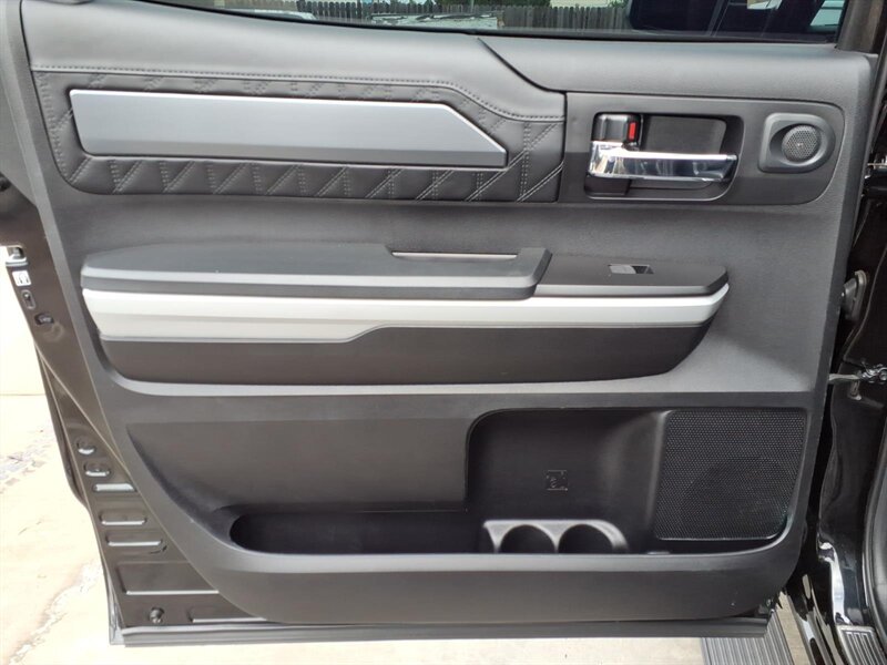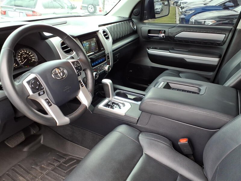 Turn heads in this 2020 Toyota Tundra Platinum Edition, finished in Midnight Black Metallic with a Black leather interior. Powered by the stout 5.7L V8 (381 hp / 401 lb-ft) and under 25,000 miles (averaging <4,000 miles/year), it delivers strong performance with 13 MPG city / 17 MPG highway. Platinum factory appointments include premium perforated leather seats with heating and ventilation, power-adjustable driver with memory, elegant wood-and-chrome cabin accents, dual-zone automatic climate control, a large touchscreen infotainment system with Bluetooth and navigation, full Toyota Safety Sense (pre-collision with pedestrian detection, lane departure alert, dynamic radar cruise control, automatic high beams), blind-spot monitoring with rear cross-traffic alert, front/rear parking sensors, backup camera, keyless entry with push-button start and generous power convenience features. This one also boasts AMP steps, upgraded audio, upgraded wheels & tires, and a bed cover — stylish, comfortable, and ready for anything!