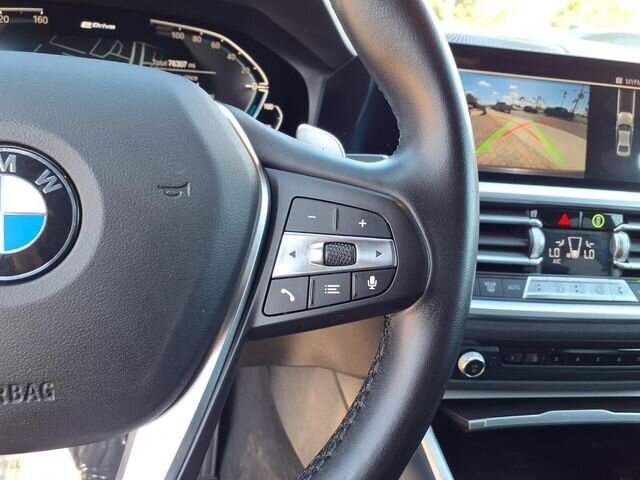 Meet the cheerful 2021 BMW 330e — Mineral Grey Metallic outside with a sleek Black interior, powered by a 2.0L plug-in hybrid turbo I4 delivering 288 hp and 310 lb-ft through BMW’s smooth 8-speed automatic with standard rear-wheel drive. Factory equipment includes supportive power front seats, dual-zone automatic climate control, BMW iDrive infotainment with navigation and Apple CarPlay compatibility, Bluetooth and USB connectivity, LED headlights and taillights, alloy wheels, regenerative braking, rearview camera, full complement of airbags plus ABS, traction and stability control — all while returning an EPA-rated 25 MPG city / 33 MPG highway.