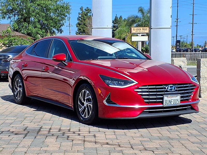 Turn heads in Calypso Red with a Black interior—this 2021 Hyundai Sonata Hybrid Blue is powered by a efficient 2.0L Hybrid I4 (192 hp) and returns an impressive 50 MPG city / 54 MPG highway.
