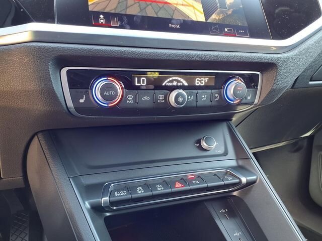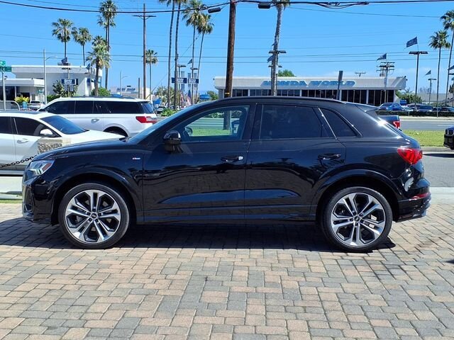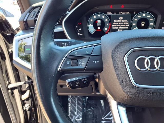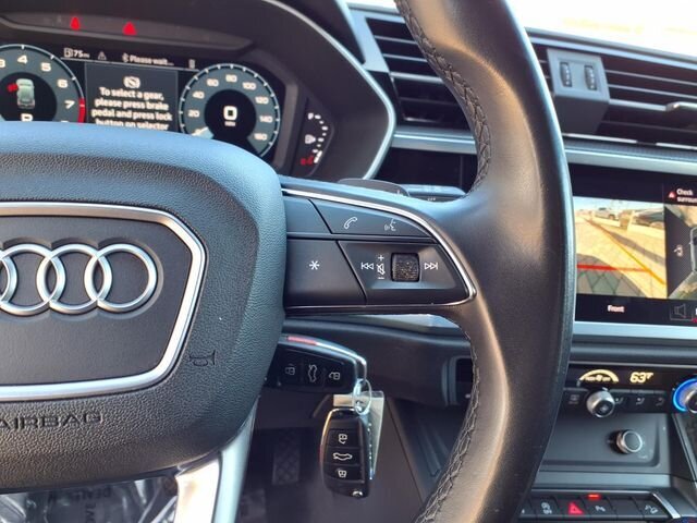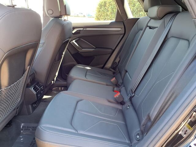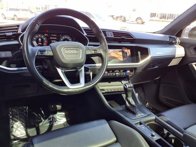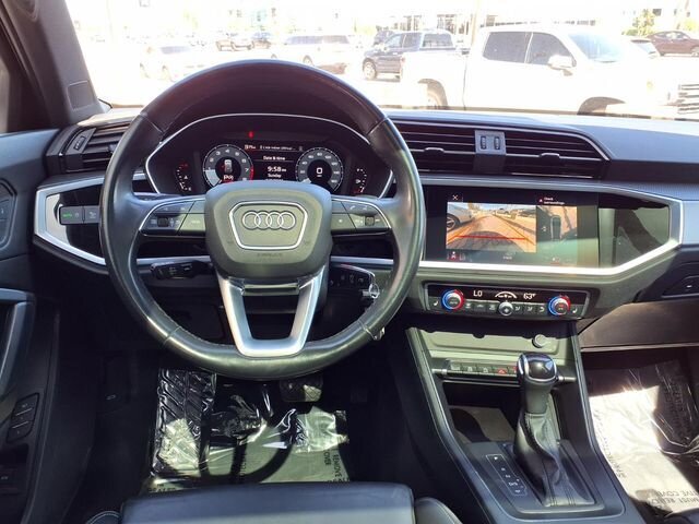 Sporty and sophisticated in Mythos Black Metallic with a Black interior, this 2022 Audi Q3 quattro S line Premium Plus is powered by a lively 2.0L Turbo I4 producing 228 hp and 251 lb-ft (EPA: 21 city / 28 hwy). Factory-loaded with quattro all-wheel drive, S line exterior accents and distinctive alloy wheels, full LED headlights and taillights, panoramic sunroof, and a hands-free power liftgate. Inside enjoy leather seating surfaces with heated front seats, dual-zone automatic climate control, keyless entry/Start, the Audi virtual cockpit digital instrument cluster, MMI touch infotainment with navigation, Apple CarPlay/Android Auto, Bluetooth and USB ports, a premium audio system, plus rearview camera, front/rear parking sensors and Audi pre sense safety features. Fun to drive, comfortable to live with — a refined compact luxury SUV ready for your next adventure.