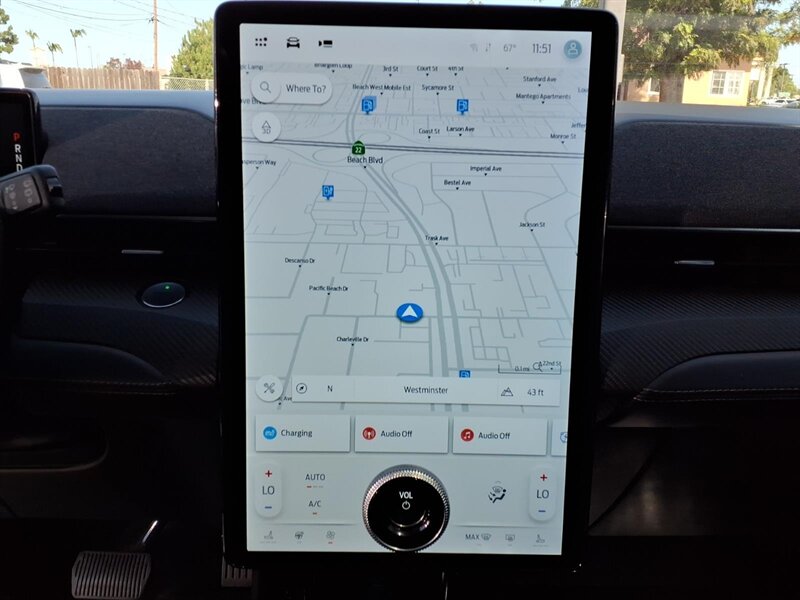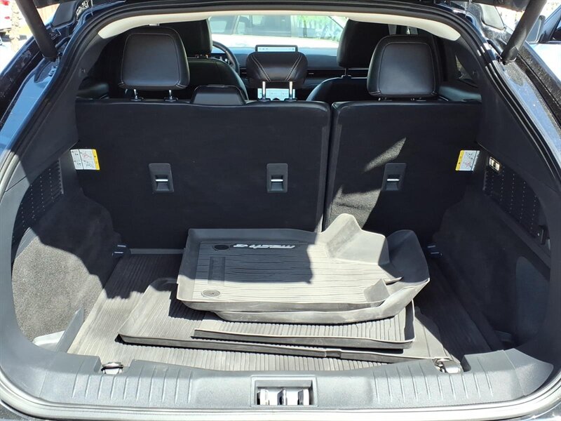 Bright and sporty in Shadow Black with a Black Onyx interior, this 2022 Ford Mustang Mach-E Premium packs an electric 266 hp / 317 lb-ft powertrain and plenty of factory-installed comforts and tech. Standard equipment includes the large portrait 15.5-inch SYNC 4A touchscreen with full smartphone integration (wireless Apple CarPlay and Android Auto), a crisp digital instrument cluster, FordPass Connect with Wi-Fi hotspot and remote features, and a premium audio setup. Safety and driver aids come from Ford Co-Pilot360 — automatic emergency braking with pedestrian detection, lane-keeping assist, blind-spot monitoring with cross-traffic alert, and a rearview camera — plus parking sensors for easier maneuvers. Comfort and convenience are covered by dual-zone automatic climate control, power-adjustable heated front seats, a panoramic fixed-glass roof, hands-free liftgate, LED exterior lighting, and stylish alloy wheels — all ready to enjoy right from the factory.