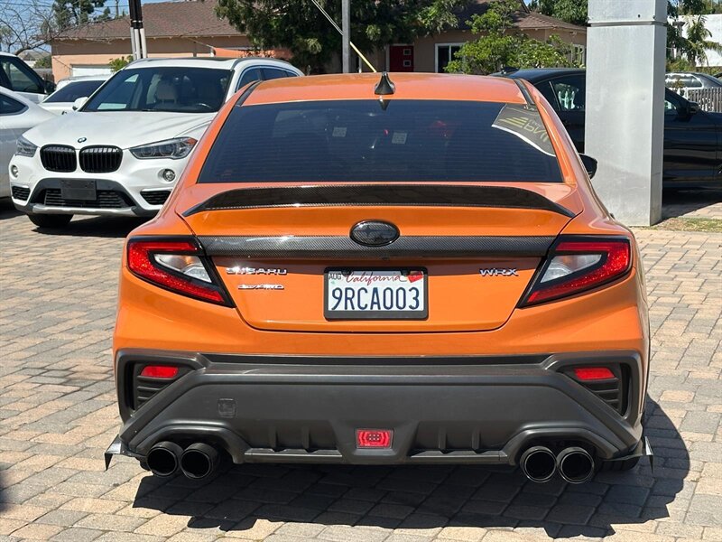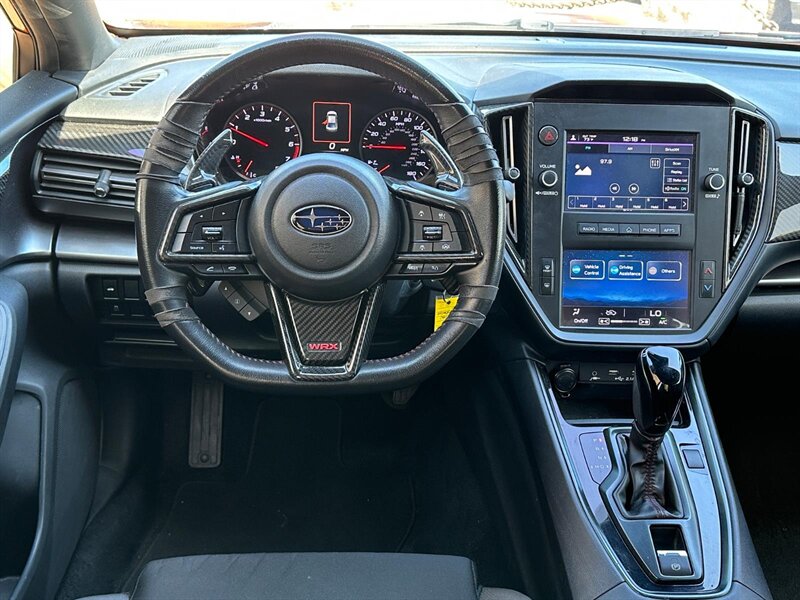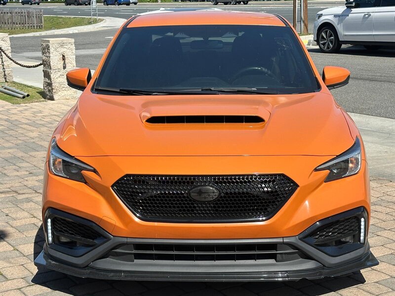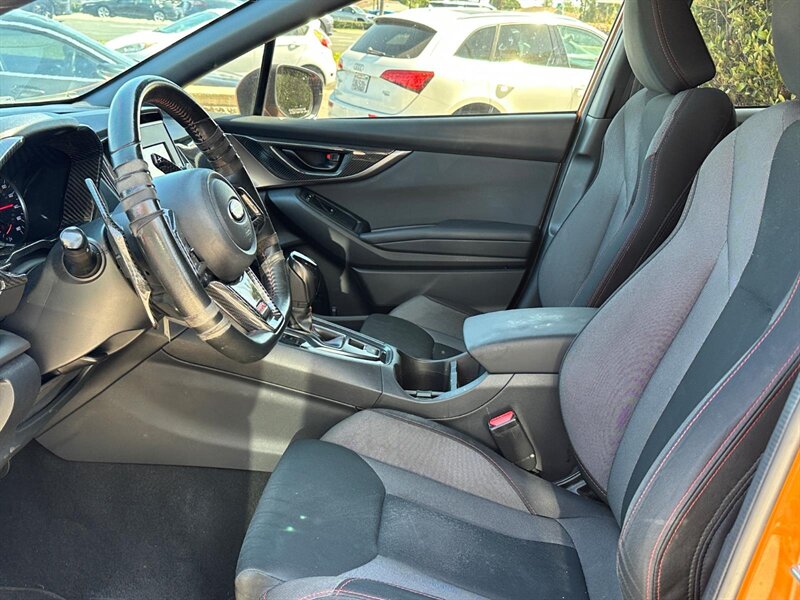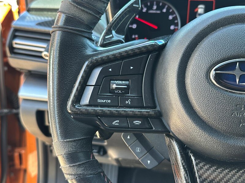 Solar Orange Pearl 2022 Subaru WRX powered by the punchy 2.4L turbo H4 (271 hp, 258 lb-ft). Factory-equipped with Symmetrical All-Wheel Drive, sport-tuned suspension, performance-oriented drivetrain (manual standard with an automatic available), LED lighting, alloy wheels, sport seats in black with red contrast stitching, leather-wrapped steering wheel, Subaru STARLINK infotainment with Apple CarPlay/Android Auto, Bluetooth and USB ports, rearview camera and Subaru’s suite of active safety and driver-assist technologies. Under 40,000 miles (averaging less than 8,000 miles/year) and rated about 19 MPG city / 25 MPG highway — a fun, confident drive with eye-catching color and spirited performance!